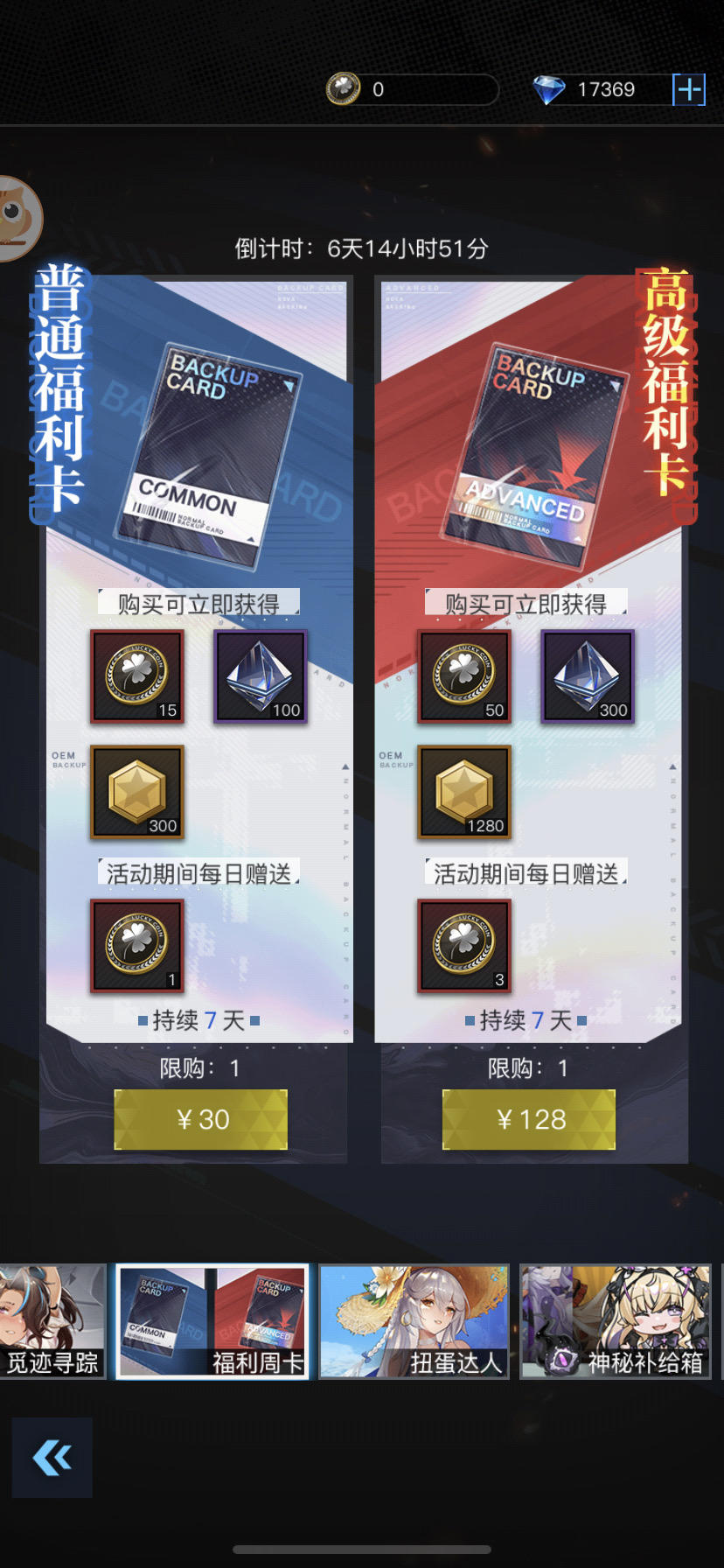 ps:福利周卡任何一天买入,都可以获得周卡包含的所有奖励哦(之前错过的都会补给你(o^^o))