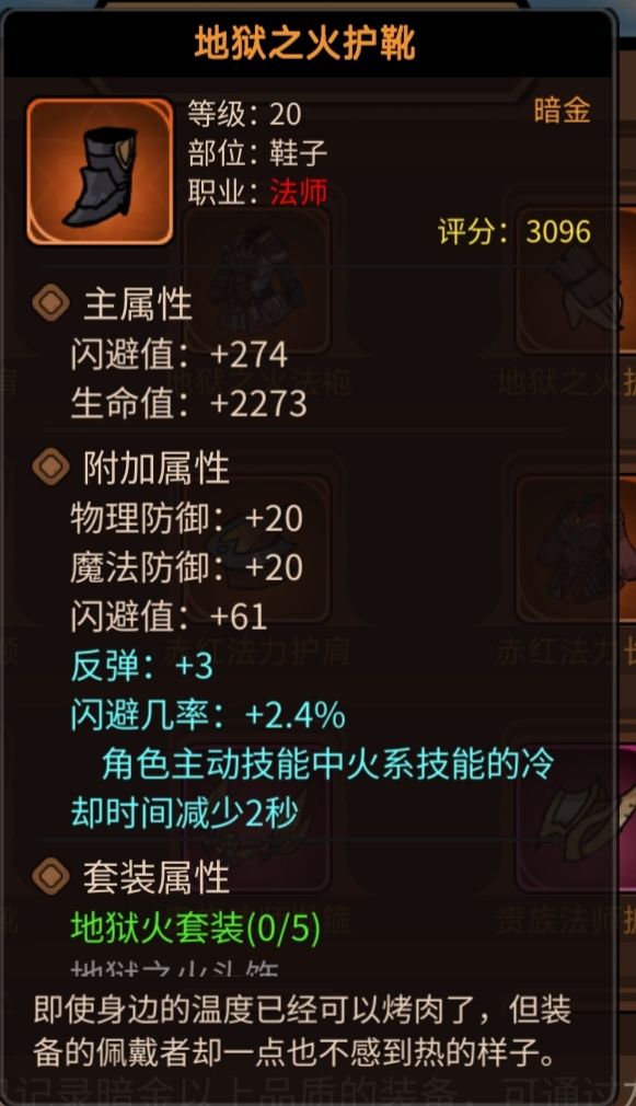 火系减2秒(法师20级橙鞋——地狱之火护靴)