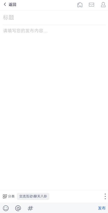 2.帖子编辑界面中,东家可以输入东家想要发的帖子的标题、正文,点击底部的表情包按钮可以插入表情,点击“@”按钮可以圈住东家想要艾特的人,点击“#”可以输入东家想要创建的话题~对了,如果东家想要插入图片,可以点击右下角“⋮”按钮,即可看到图片按钮,点击就可以插入东家手机里的图片了。