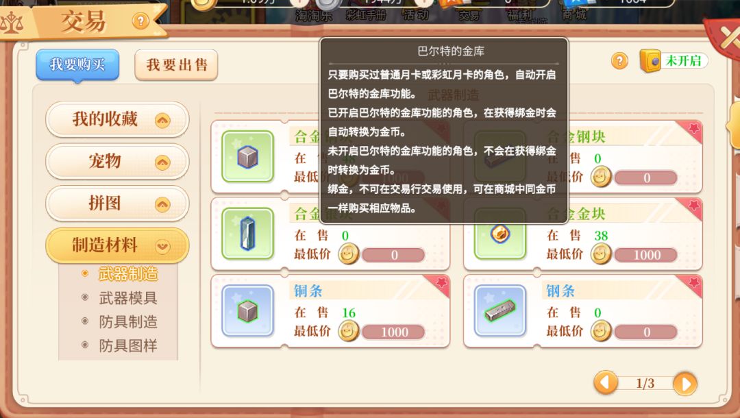 1.当我们在游戏中完成日常活动产出的金币将会变成绑定金币,绑定金币虽然和金币价值一样,但是无法进行交易。各位岛民在更新游戏前的金币不会受到影响。2.岛民可通过开通月卡获得【巴特尔的金库】状态,状态激活永久有效,激活后我们获得的绑定金币就可以转换成非绑定金币,也就可以进行交易了。3.金币肯定就是和交易行挂钩的,假如我们没有激活【巴特尔的金库】状态,那我们区交易获得的金币将会是绑定金币。所以交易比较多的岛民建议可以激活巴特尔的金库。