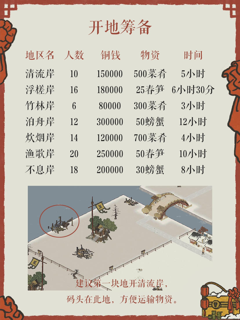 整理了开城需要筹备的铜钱和物资信息,以及新城需要的一些人物首选推荐,供知府大人们参考~