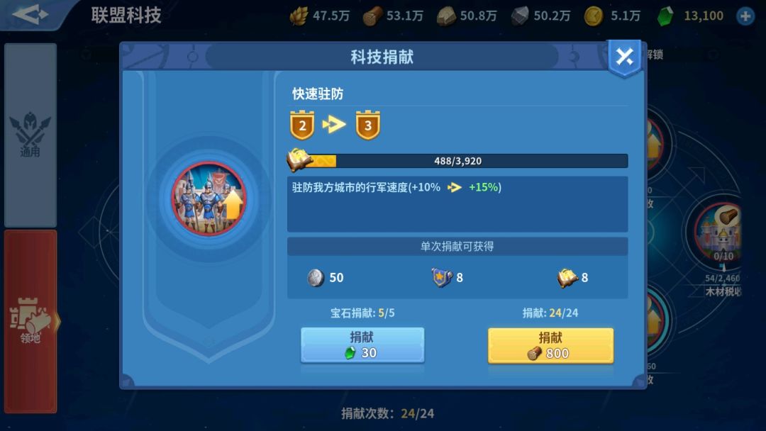 在联盟1级时解锁“快速行军“和”快速驻防“。