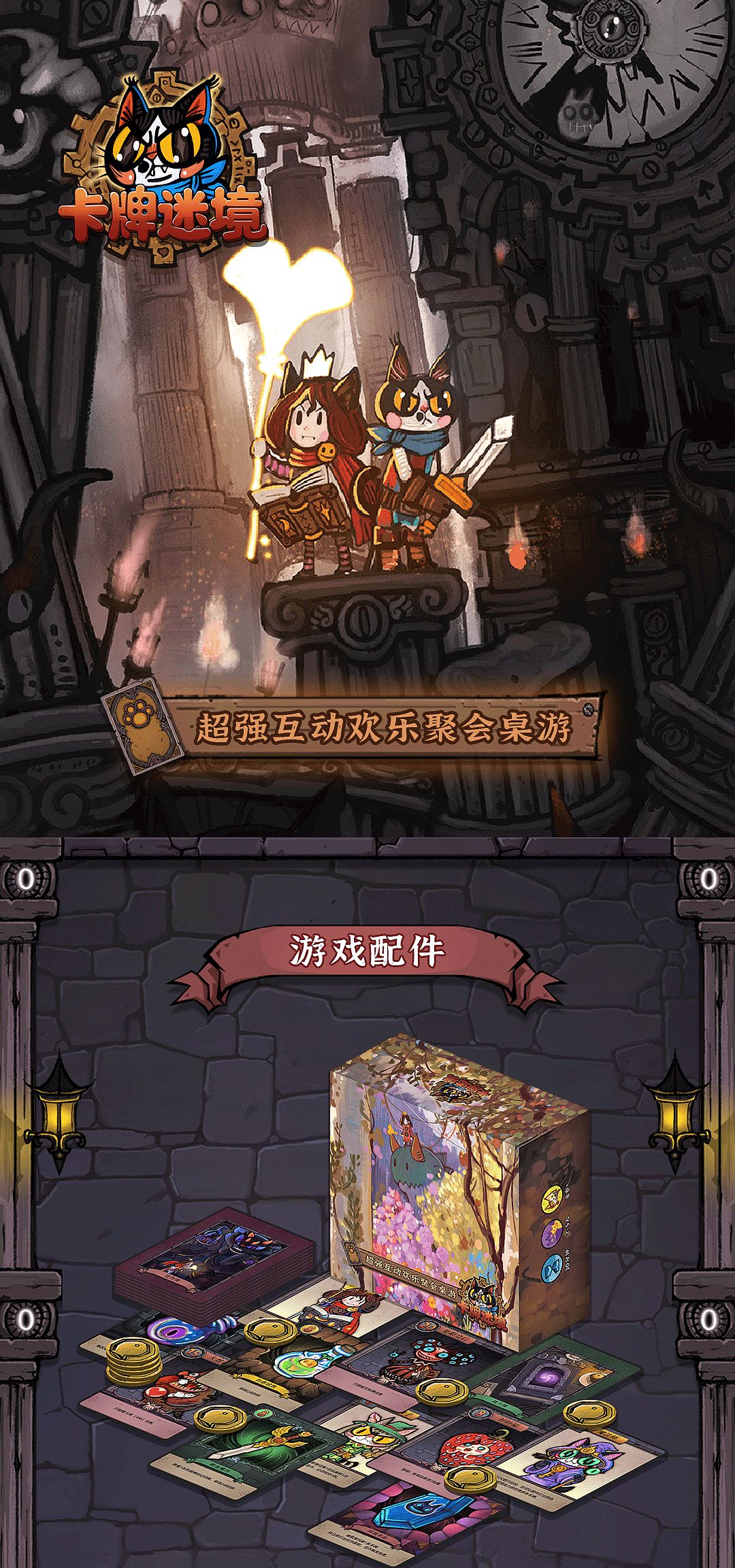 《卡牌迷境》是猫事多与星空桌游团队授权合作的《卡牌迷境》同名桌游,桌游将游戏中欢乐爽快的战斗与卡牌角色能力相结合,形成了新的一种独具一格的快节奏卡牌刷分游戏。