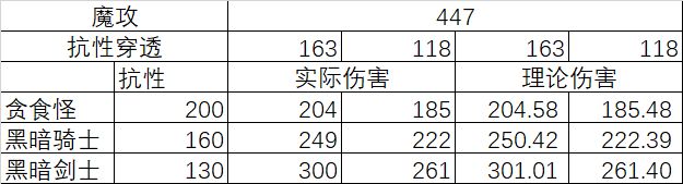 测试怪物为30层贪食怪,黑暗剑士,黑暗骑士,抗性分别为200,160,130