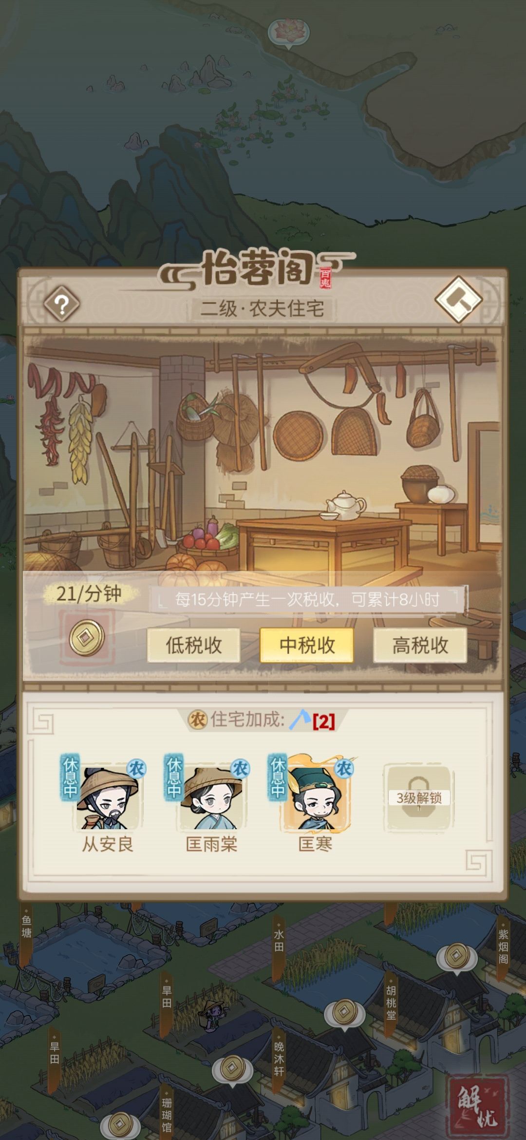 酿酒坊:前期经济主要来源之一,上限为1,可升级。