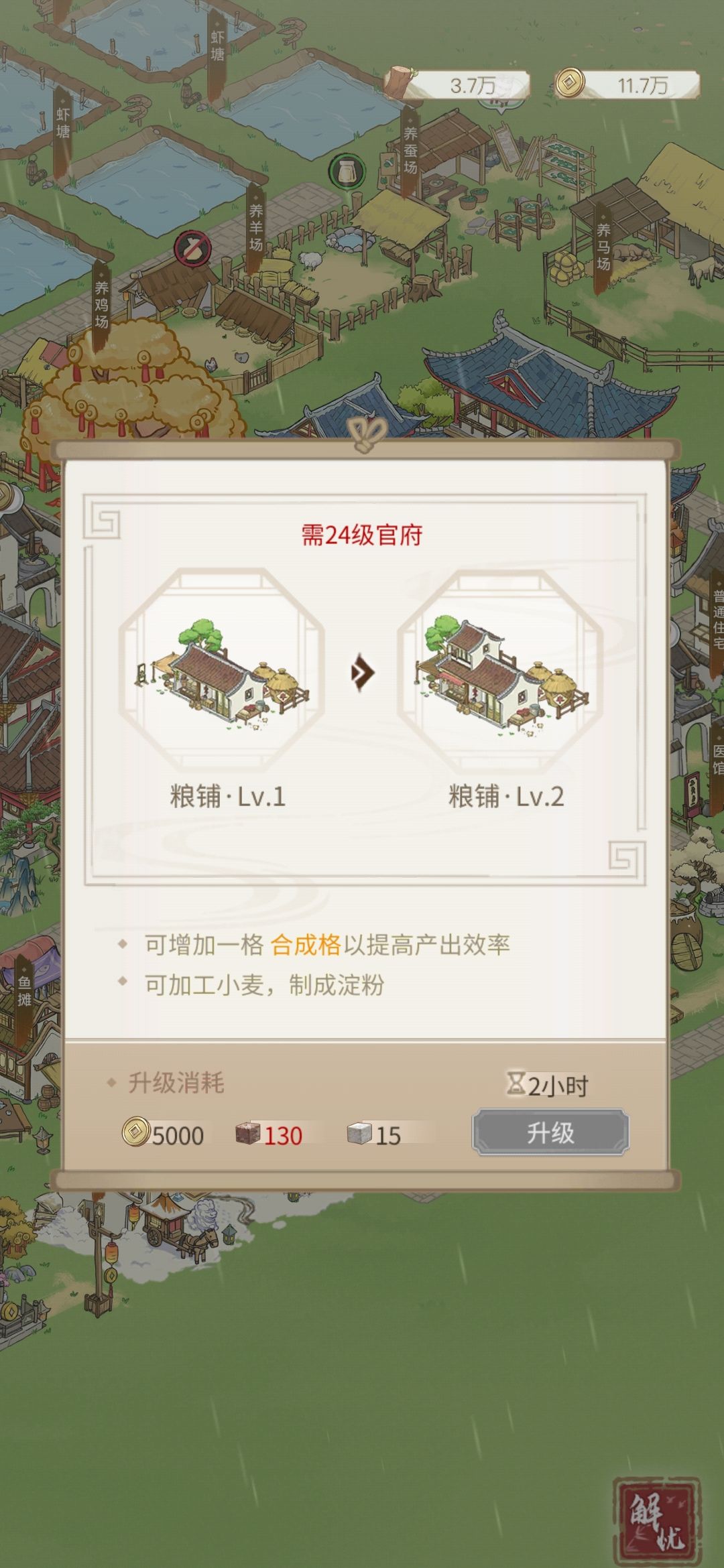 粮铺:过任务可以造一个。