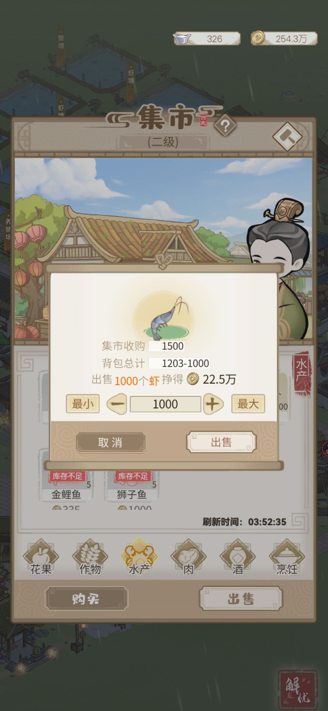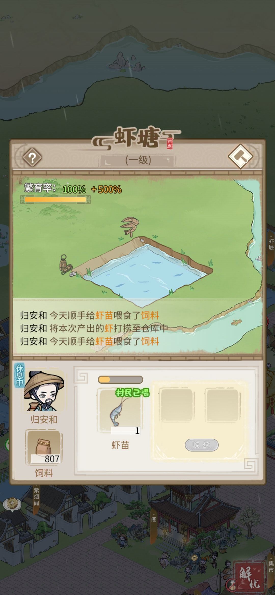 钱够多了,足够你一下子升到鱼塘,虾塘升级条件的,就直接升,升完后在升建筑赚更多钱。