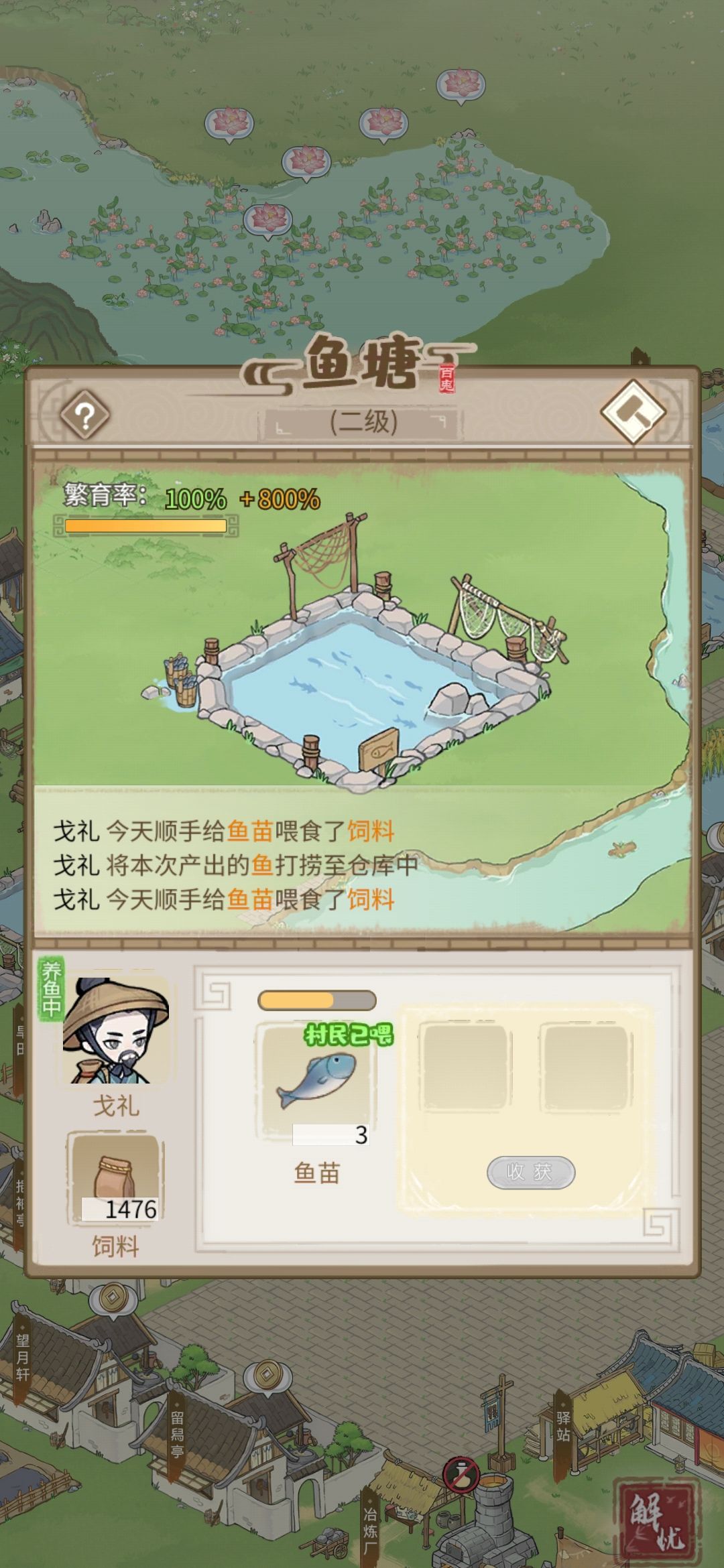 10鱼苗产出:65鱼,是1级的三倍,回本很快。