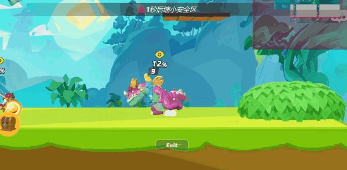 首先要聊一聊当前的吃鸡模式。由于《派对之星》是一款平台格斗游戏,因此英雄并没有生命值,取而代之的是击飞值和死线。因此,在做派对大决战模式时,如何将吃鸡模式惯用的缩圈、吃毒等机制加入游戏,就成为了设计师们重点考虑的问题。