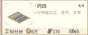 1.可以建药田时,只建造一块,种植白芷