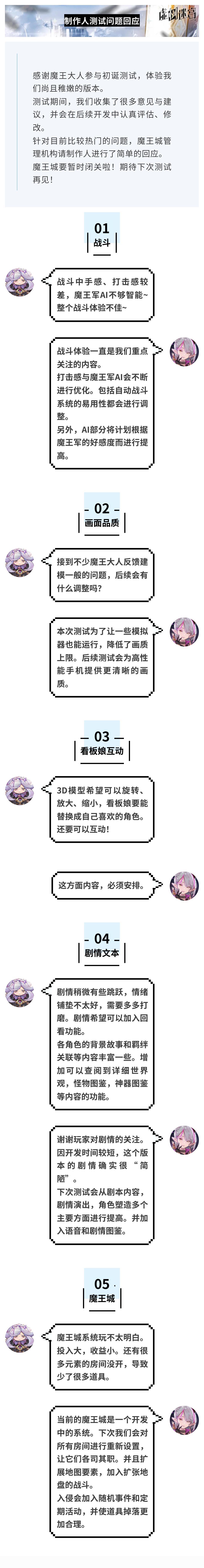 针对目前比较热门的问题,魔王城管理机构请制作人进行了简单的回应。