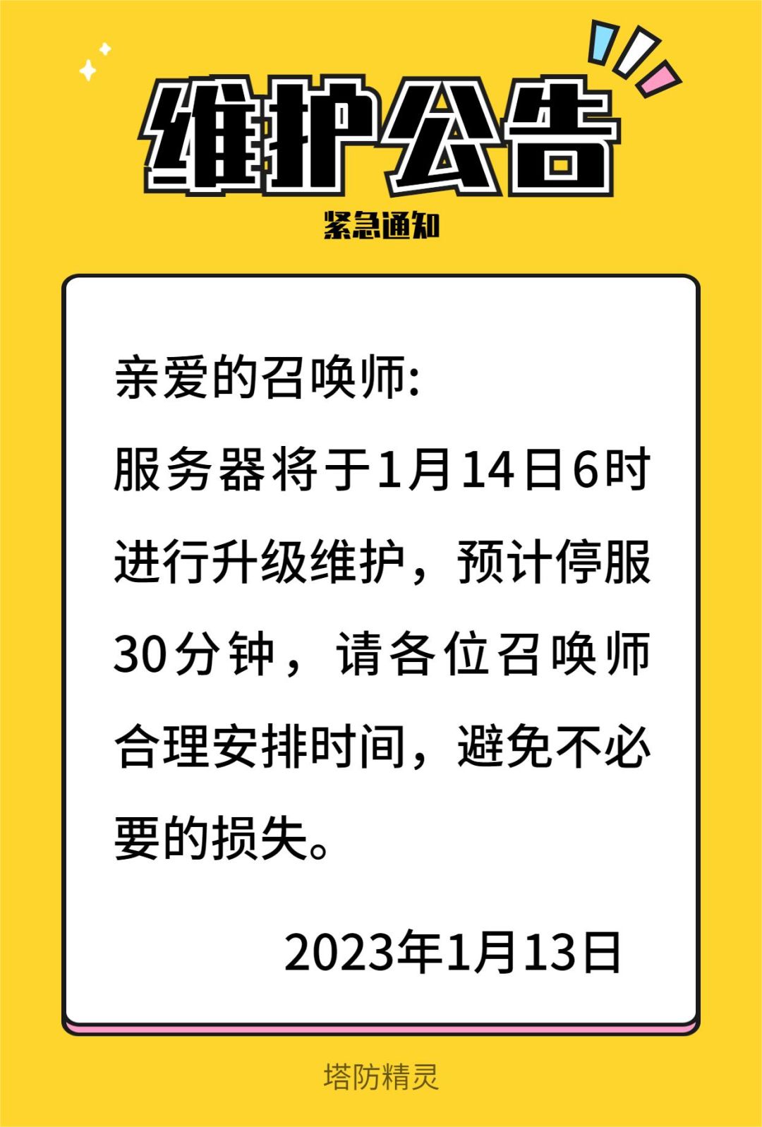【维护公告】1月14日
