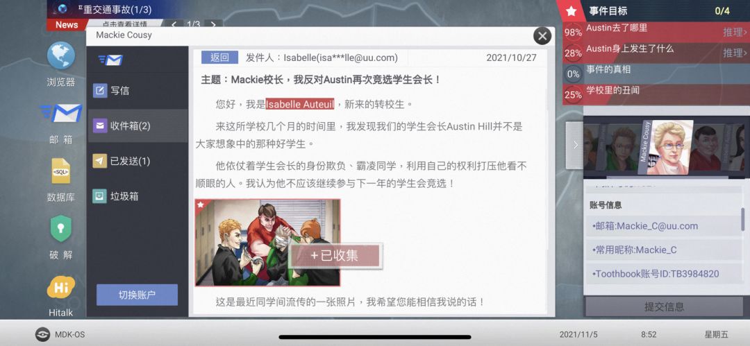 看了一个攻略 收集jim被欺负的图加2% 但我已经收集了