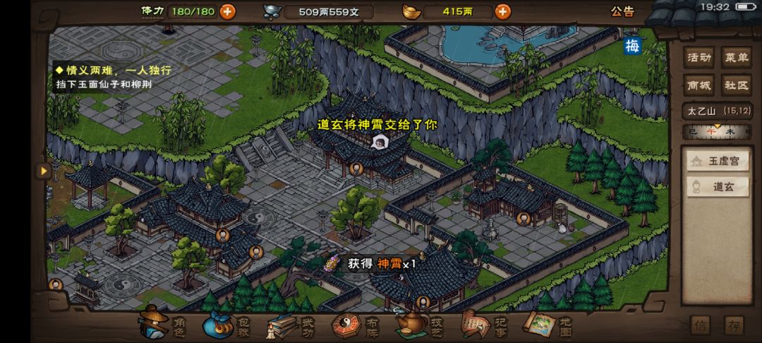 从小半年前神霄就一直保管在道玄这,如今终于拿到手了(虽然没啥用,不如捻花),接下来还有药材、大星云剑、天罡指和好几个秘技,养老的时间看来是不能短了