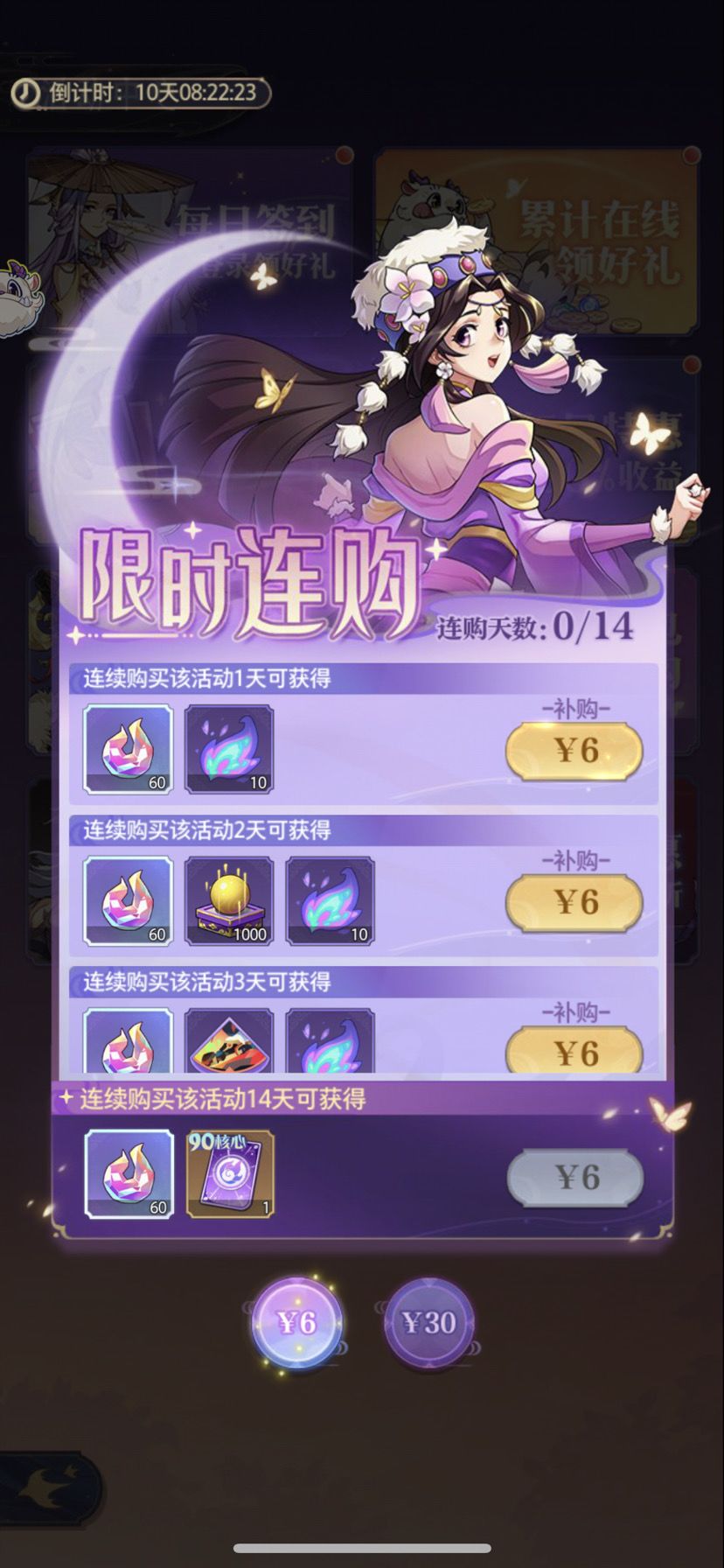 每周六元十连礼包可以购买,VIP等级礼包看自己需要进行购买