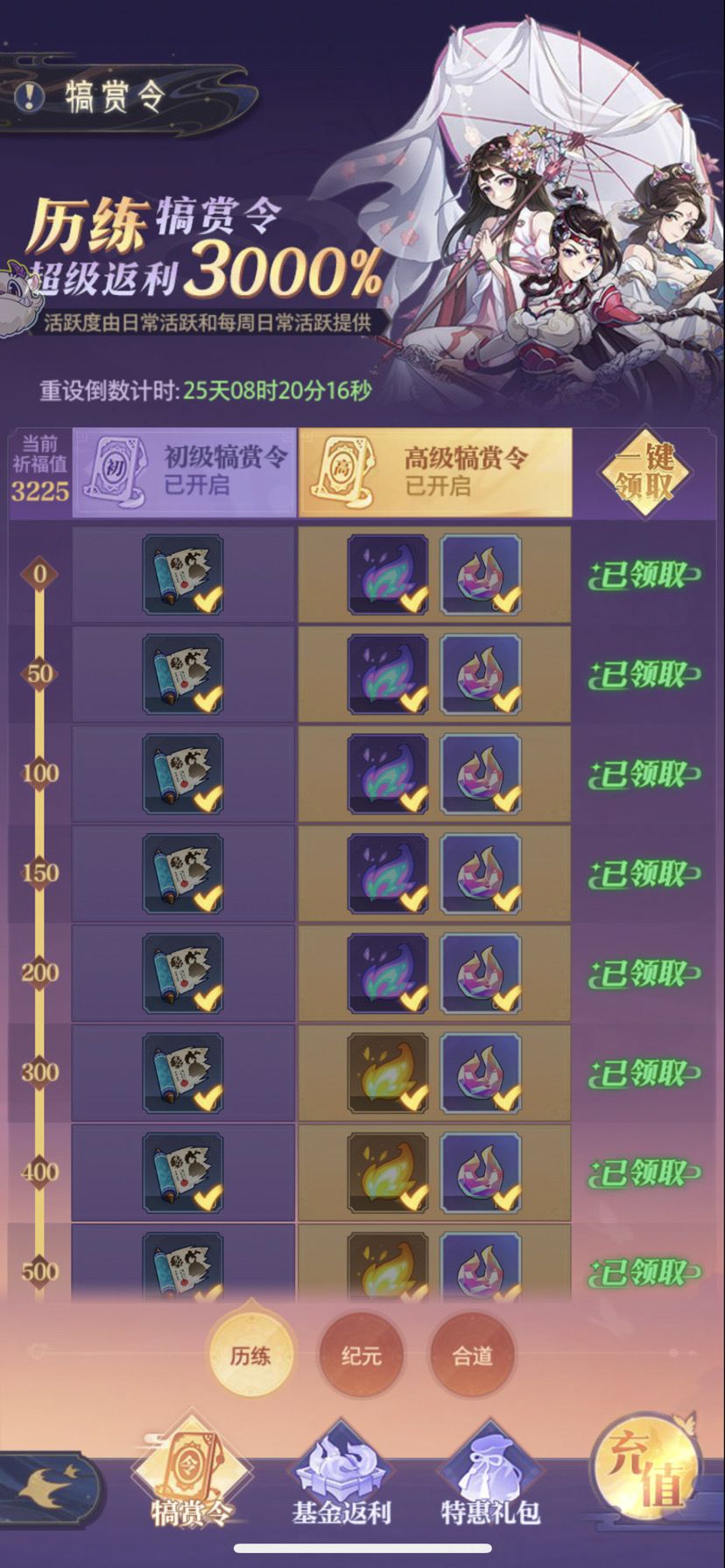 四个基金,成长和仙灵基金必买,后面两个一个328一个648同样很香,但是略贵,根据自己的能力购买