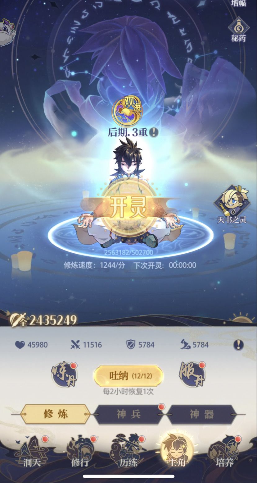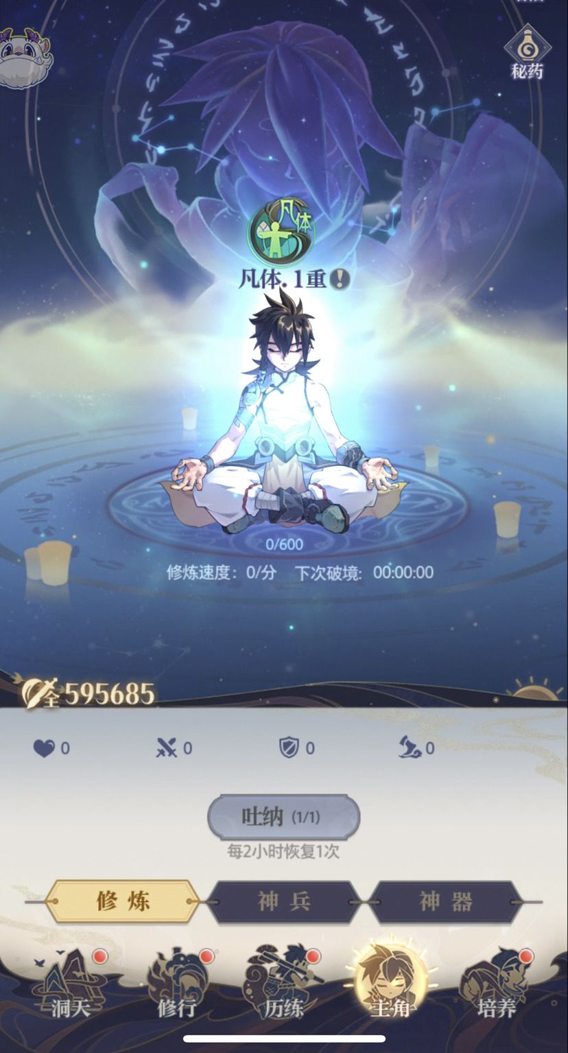 后面会出现炼丹,服丹的选项。这边建议前期拉快进度可以在万宝阁里面购买 紫色修为丹或者橙色修为丹,前期能服丹次数不多最好都吃橙色或者紫色