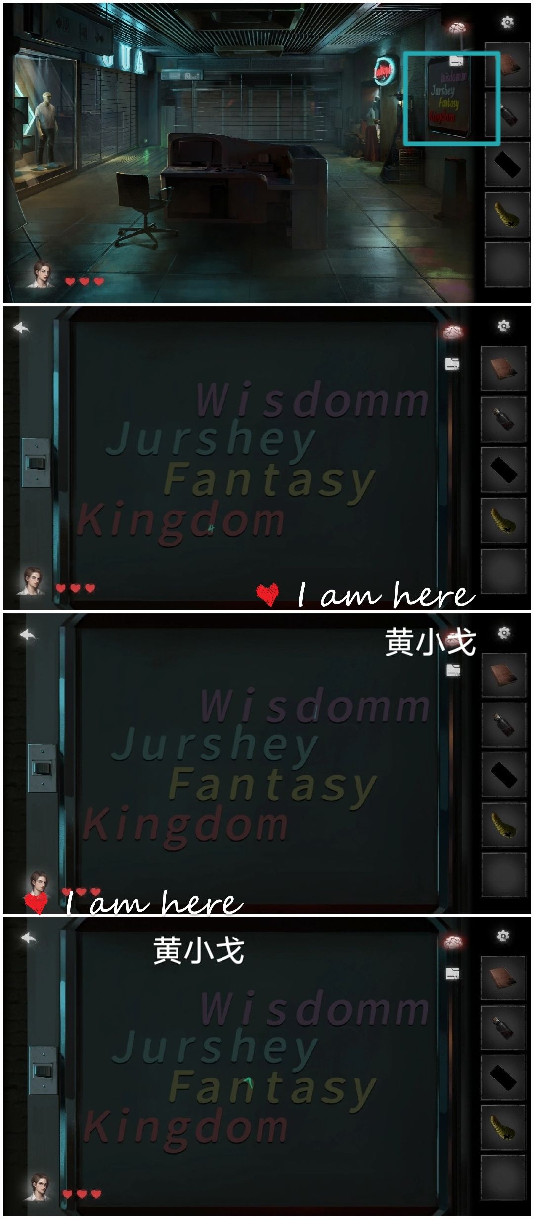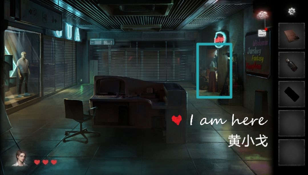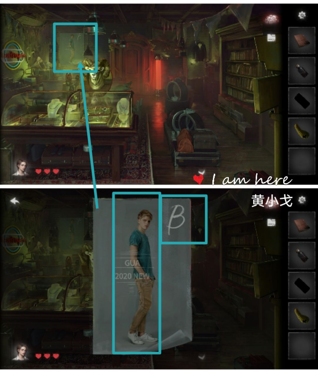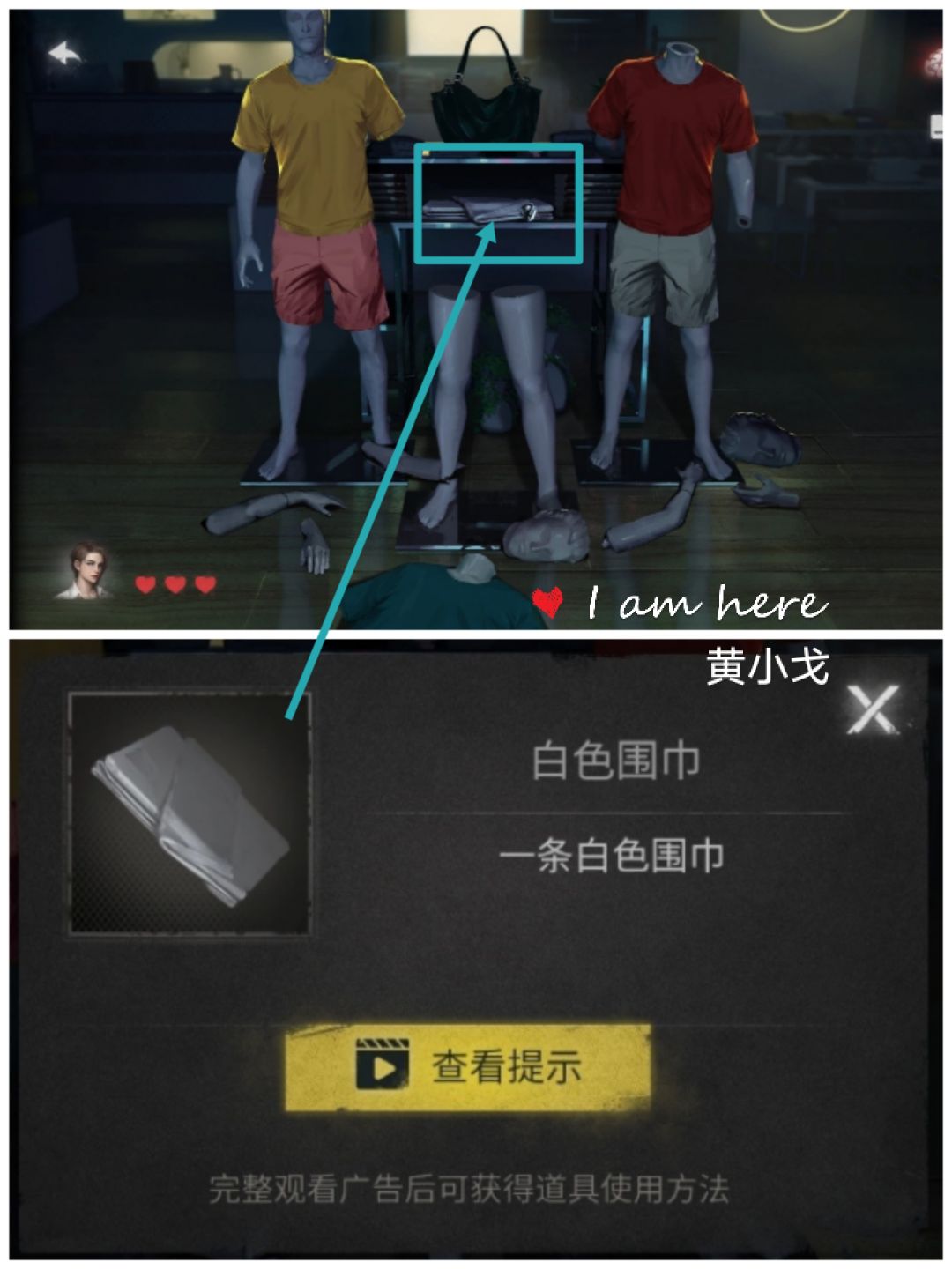 17.(书店)点击门,在红色柱子放入【白色围巾】,门打开,进入(书房-密室)