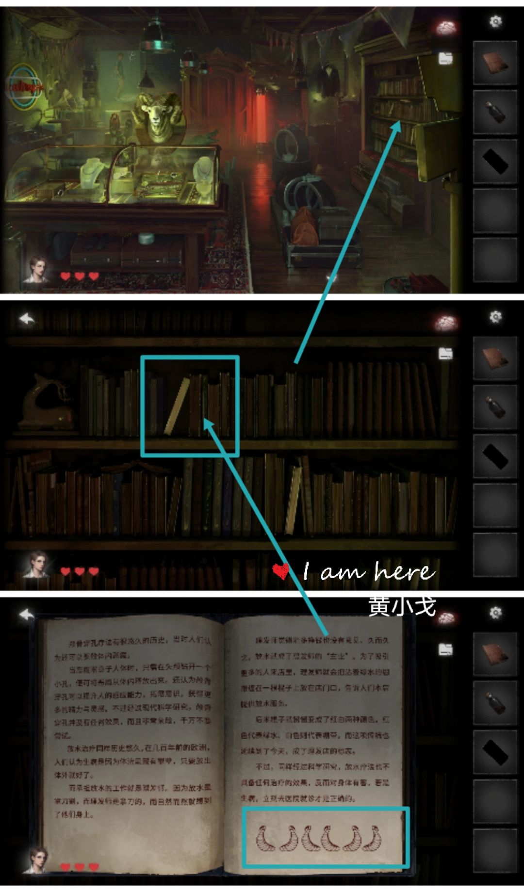 2.点击书架,查看上方书籍,获得线索(羊角:左右左左右右)