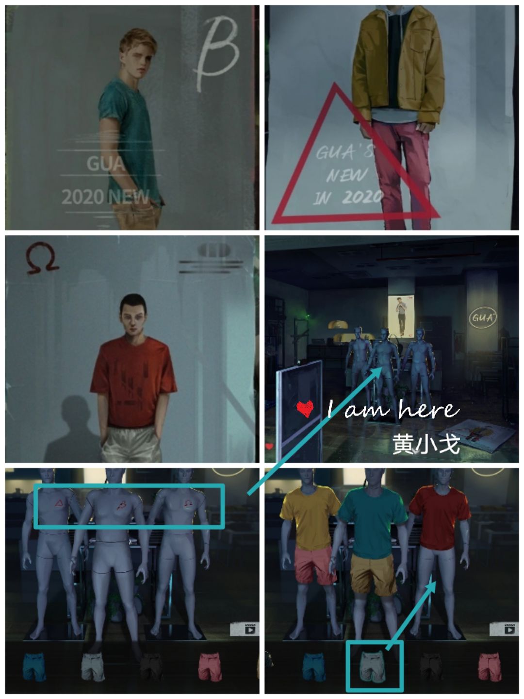 5.点击查看墙上的海报(β-蓝色衣服-棕色裤子)