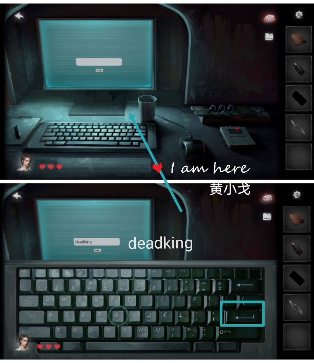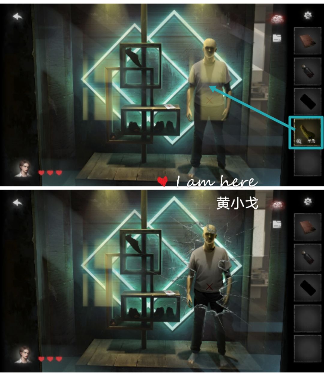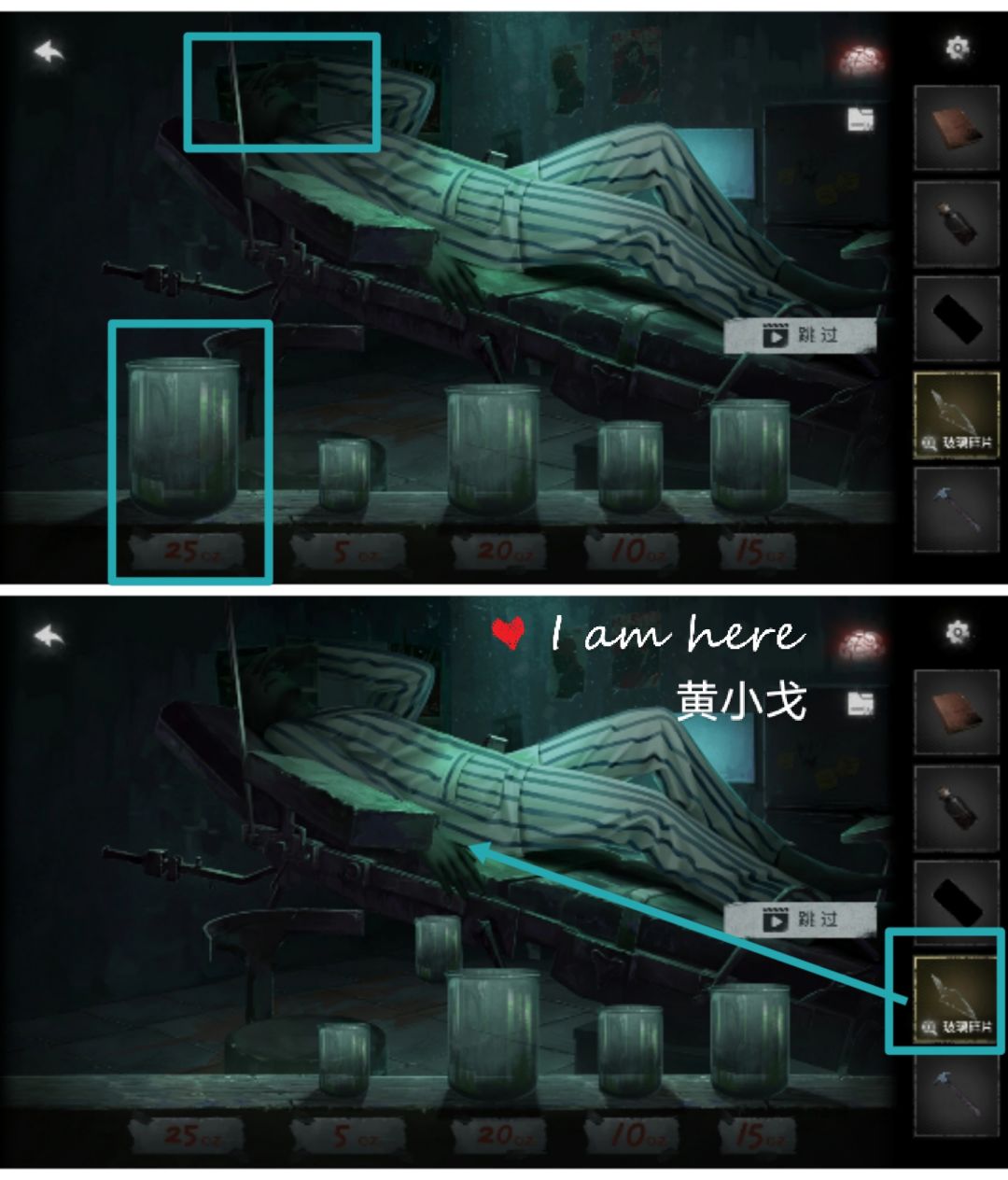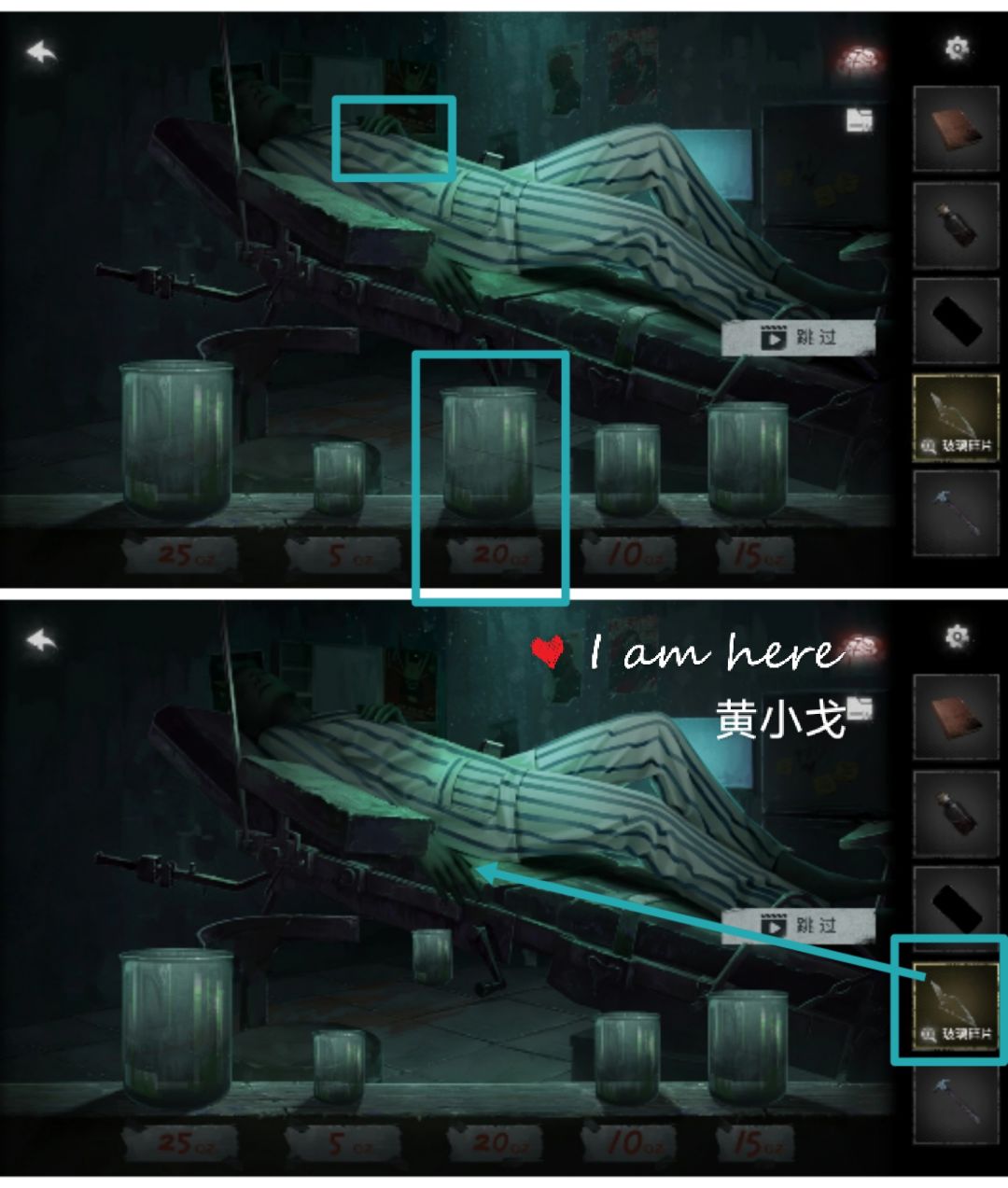 20.变成胸痛,拿出20的杯子,用【玻璃碎片】割假人的手