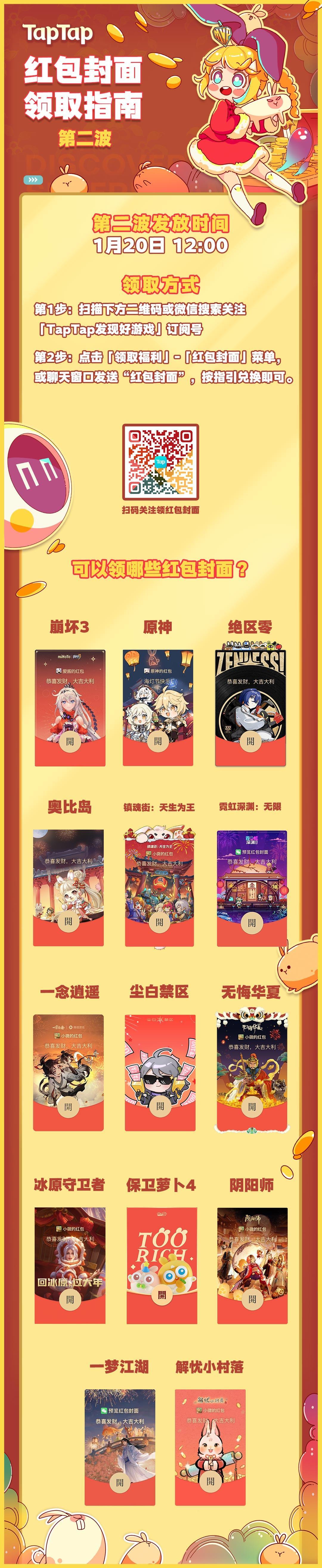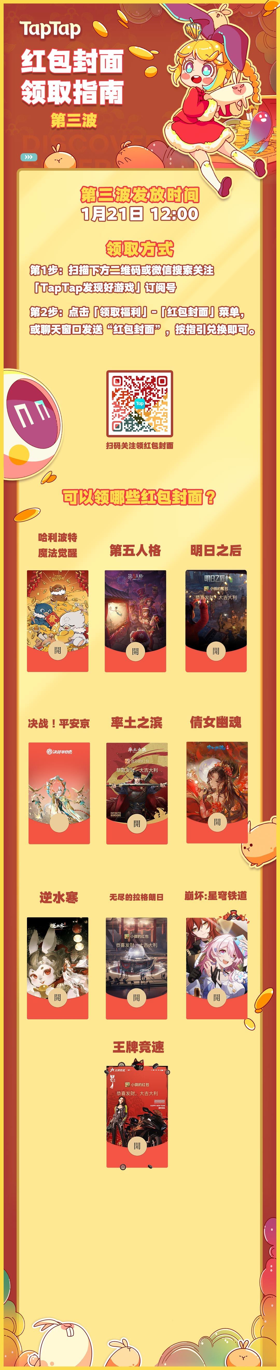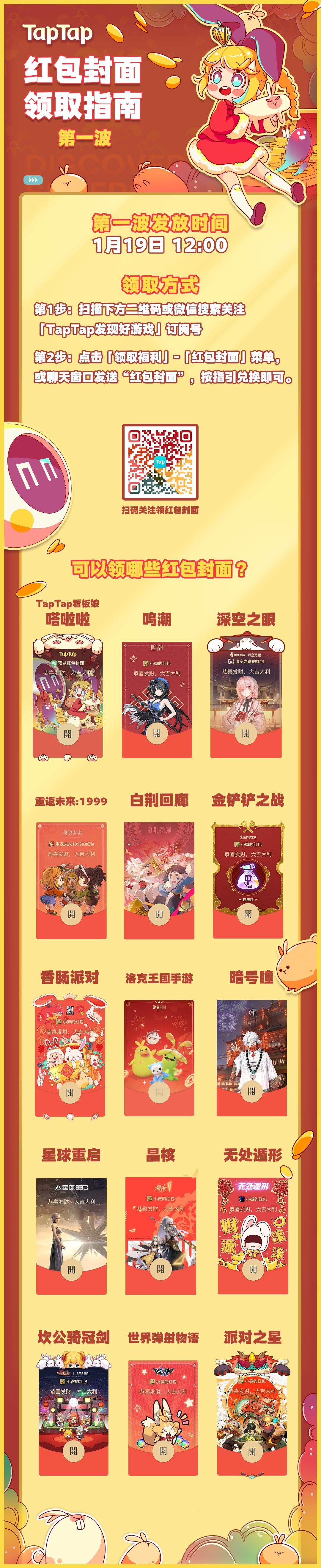 提前给大家剧透一波春节福利!你们心心念念的红包封面要来啦!不仅有最可爱的看板娘嗒啦啦、玩家精心设计的红包封面,还有超过30款人气手游的红包封面!
