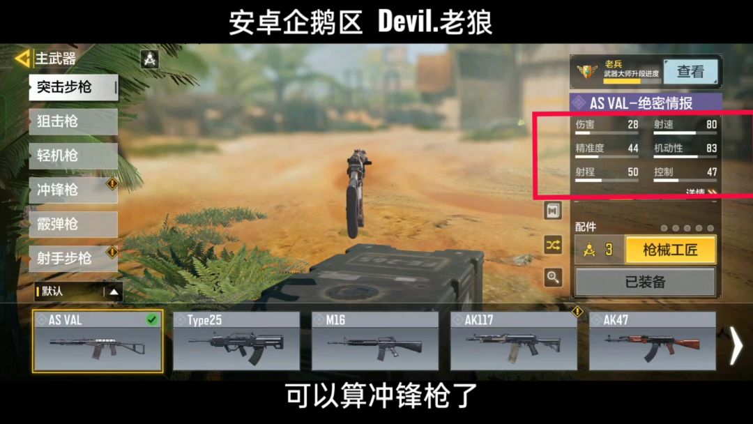 AS VAL-异变狂潮作为一把快速突击步枪,拥有高爆发、高射速的同时竟只有25发弹药,续航远远不足。在上个版本因续航问题,再次提高了弹夹载弹量和基础射程,而本次优化了后坐力表现手感,因此在排位中依然有不错的上场率!