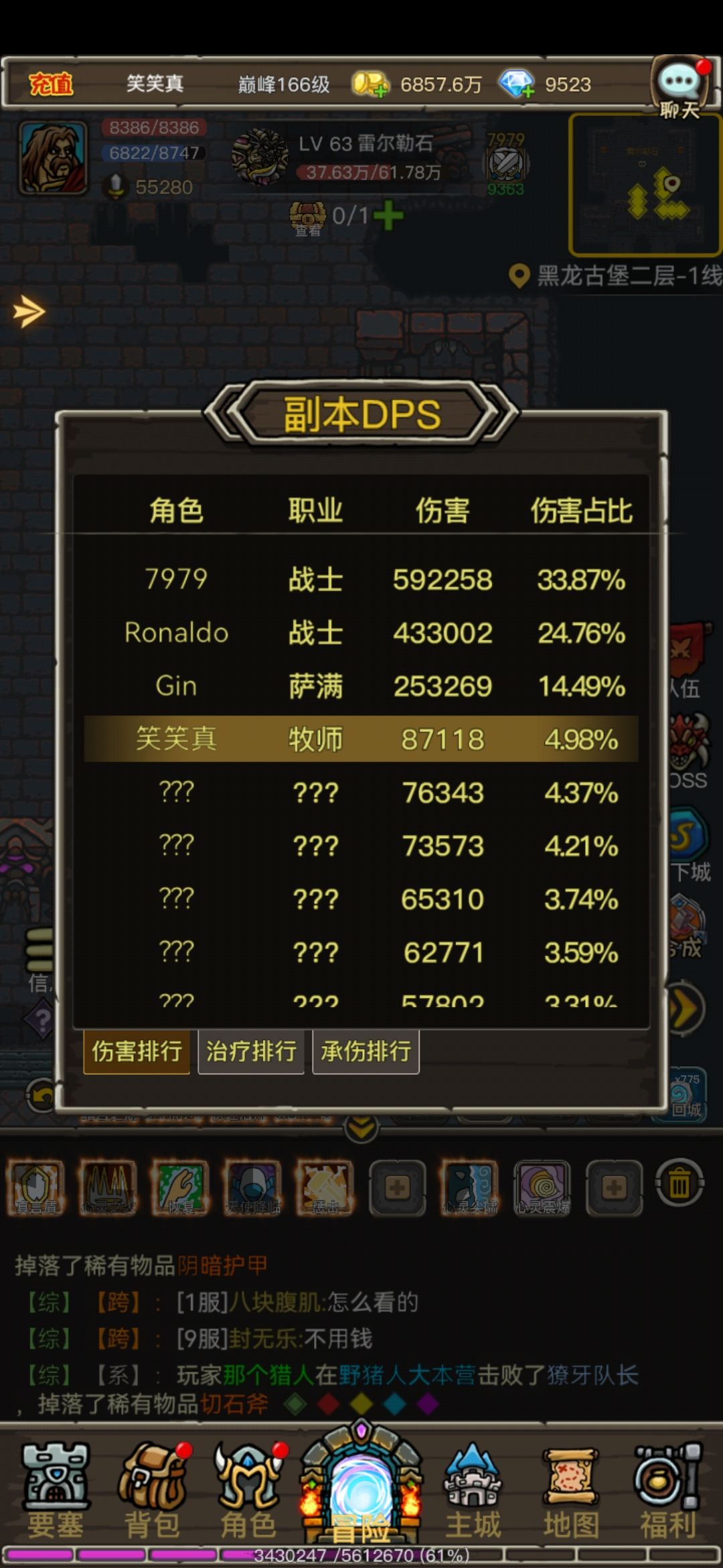 三个输出,剩下七个全是牧师。一区最强牧师团基本都在了。