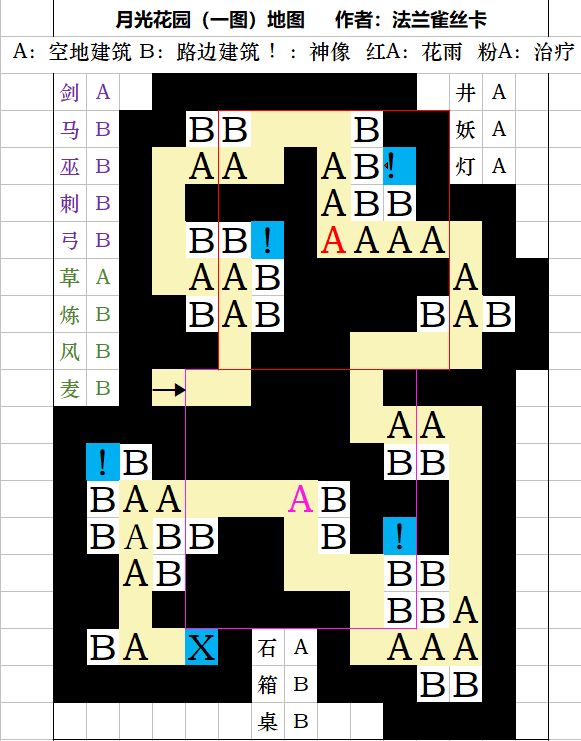 图中特别标注了花之语和治疗治愈的最佳堆放位置,注意查收。