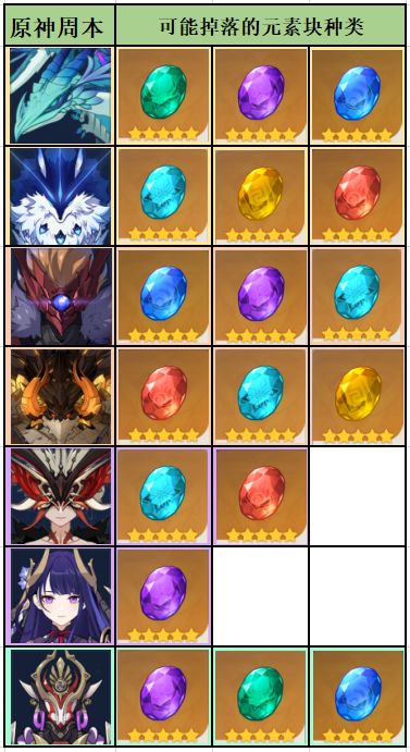 角色突破需要的元素石块,在周本里也能获得。不同周本BOSS会掉落的元素石块也是不同的,掉落的元素块属性一般都会参考BOSS自身元素属性或是战斗中使用过的元素。且可能掉落的元素石块一般是3种,只有稻妻的两位较为特殊。