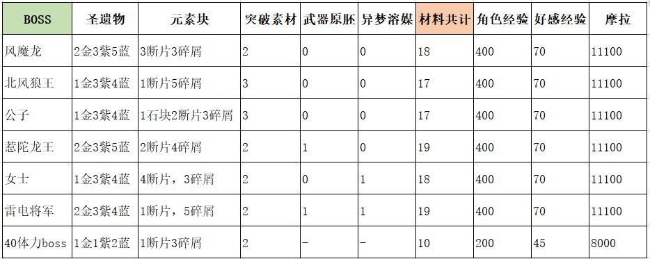 当前原神周本的体力需求,每周的前3次周本仅需要30点体力,随后的则需要60点体力。30体力带来的一系列产物,已经算不错了。此外,30体力的奖励能有70点好感经验,也算很高了;因为原神里一般是10点体力对应10点好感经验的。