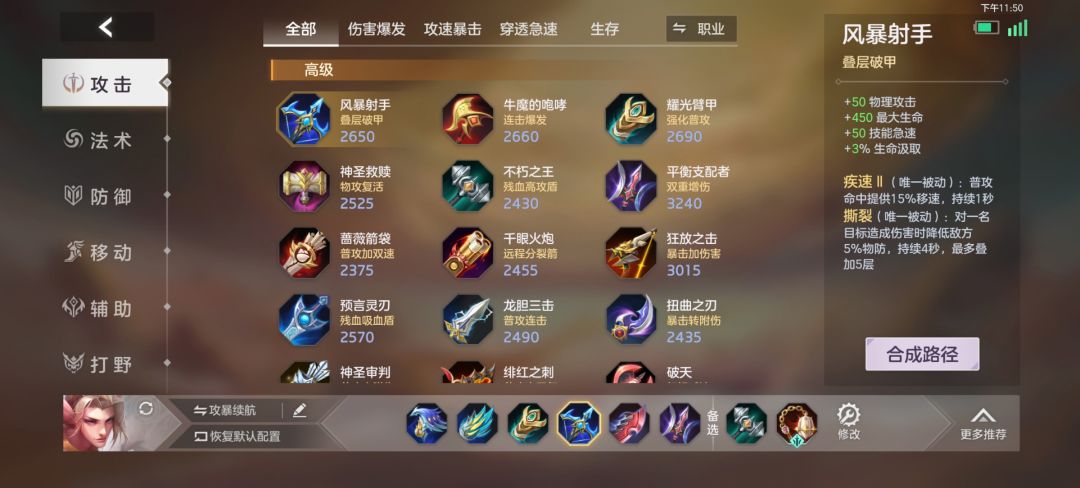 哦,同时补充一点,鞋子的优先级是移动速度优先,冷却鞋是第2件。因为我不清楚他的移速是怎么算。因为不叠加,所以不清楚优先级别。风暴射手的话是加破甲,不多说。