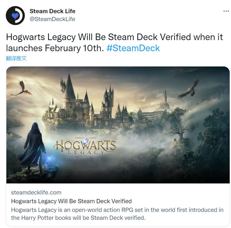 据Steam Deck Life推特消息,在《霍格沃兹之遗》2月10日发售时,Steam Deck将适配这款游戏,这样买了Steam Deck的玩家不用担心掌机上是否能玩到了。
