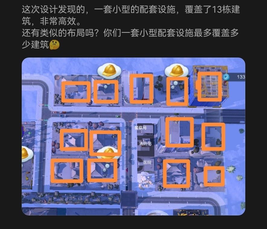 之前在别处发过,挪了过来,这是我发现的非常高效的的一种布局方式,占地小,基础设施需求少,房子确可以盖的非常多。