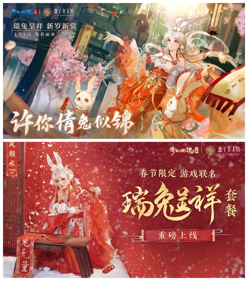 【盘子女人坊x倩女手游梦幻联动,复刻新春时装瑞兔呈祥】