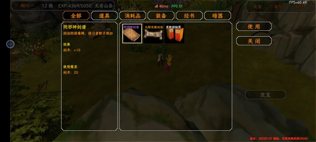 2.功法宜精不宜多,首选双手+九阳(群攻)+降龙(单体)+阴邪神剑(单体,这个要自贡我没学,有降龙也是一样的)+化功(通过毒鼎学到)。前期刷到九阳一定先练起来,加属性不容易挂。葵花内劲是最强的群攻,但是并不能通过葵花内劲谱学到,只有魔教之主自带这个技能。葵花内劲谱可以快速把属性刷满,很牛,但是也需要自贡。还有太玄经也是刷属性神功。主角资质低可能开始学不了降龙等武功,可以先学一下其他的拳法把拳掌的属性刷到符合条件,其他武功也是同理。有的武功明明符合条件却学不了,可能是你的内力是其他颜色,可以通过学无相神功或者十八泥偶把颜色刷成白色就可以了,如果刷成白色也学不了那就是相性不和,像丐帮帮主乔峰这种粗狂的就学不了自贡的武功(少镖主不用自贡就能学阴邪神剑和葵花)。