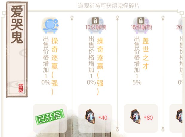 6.妖力值影响工作效率和成功率,部分鬼怪可以无需提升妖力值,只需按解锁天赋等级要求提升