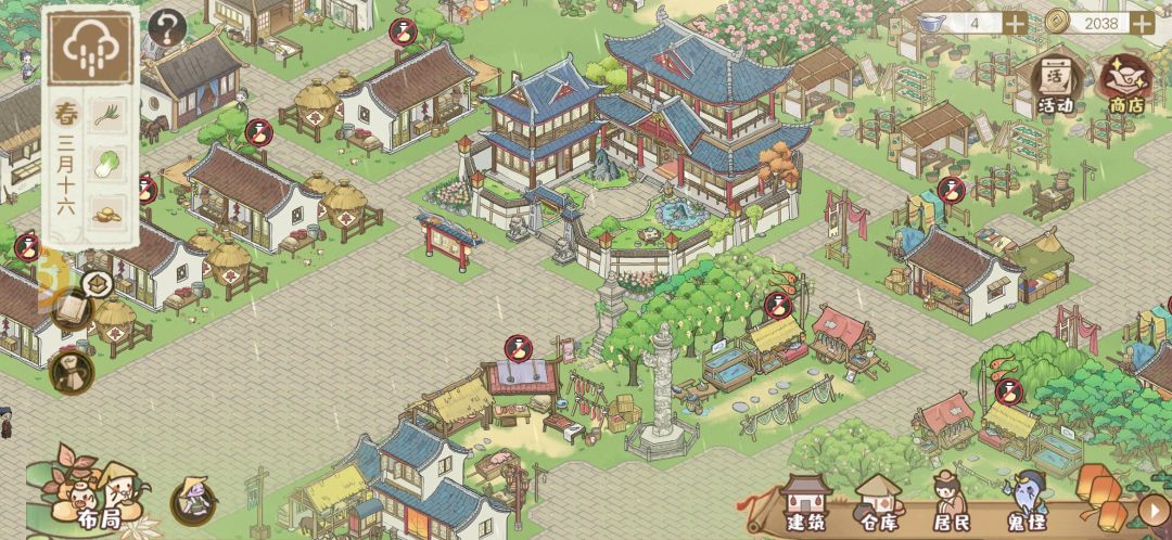 花半小时布的局,个人喜欢比较杂乱的布局,房子都是错开放的