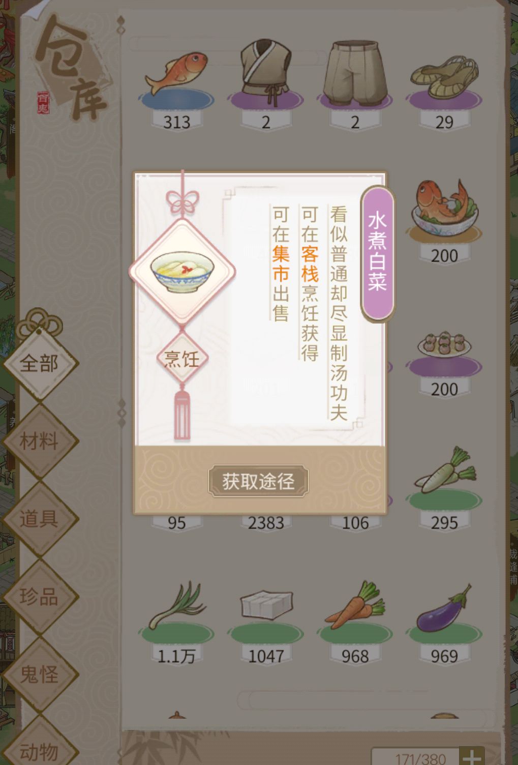 水煮白菜,手动可以做,但是没菜谱,集市也不收