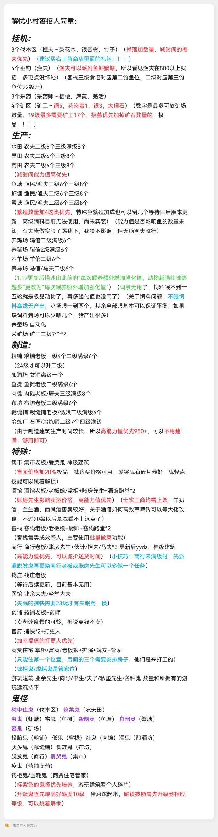 一.红色是招人优先选项,蓝色是注意事项,紫色是优先培养鬼怪