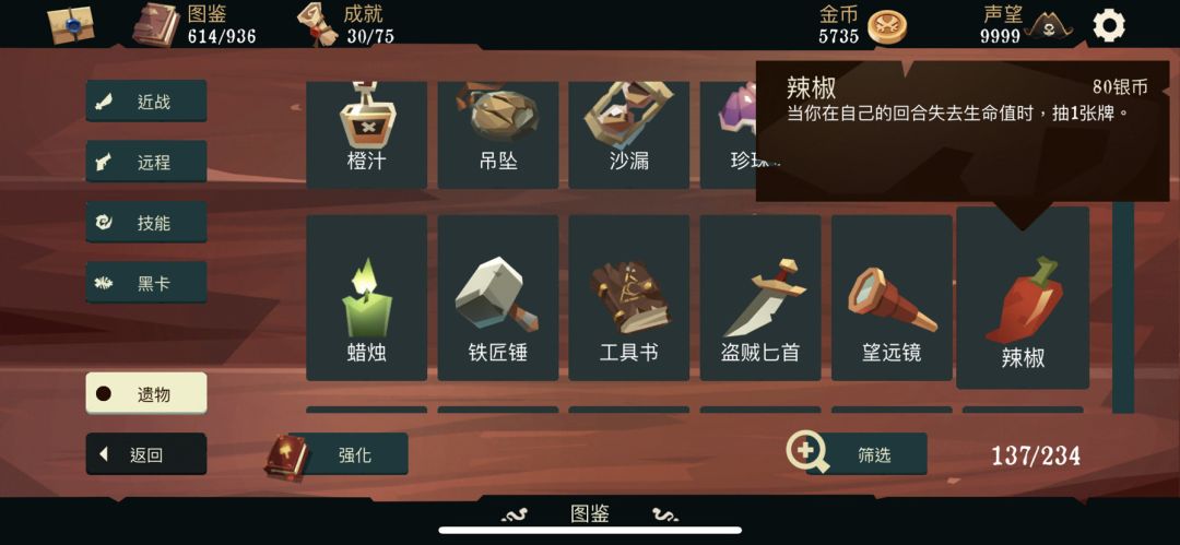还有那个50关的天赋奖励,使用一张牌扣一滴血的,配合辣椒就直接永动了,如果没有玫瑰、匕首和吊坠,无非是慢点磨死,带个鼓舞士气,完全够用
