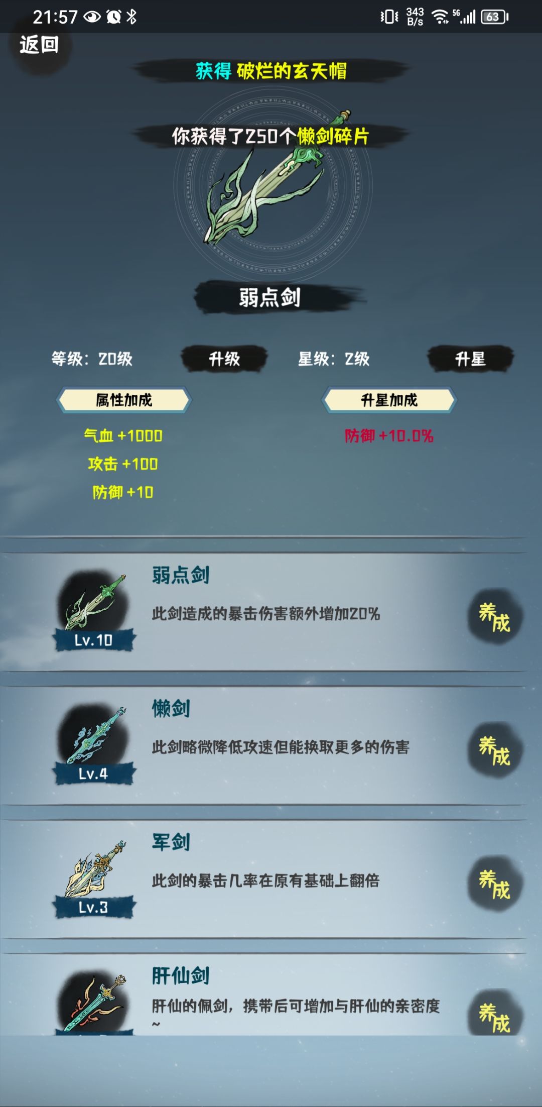 我这边弱点升到20,升级旁的等级上去了,养成对应的等级一点反应都没有,只有退出去再进来,数值才会跟升级旁的一致