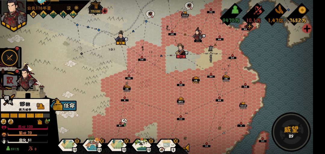 明天准备再来一局挑战,我比较推荐萧何,孔子,商鞅,萧何举士招人,另外守国可以周转一下;孔子,工匠制造机,另外加民心;商鞅,减腐化,重点是东汉太容易低民心了,不加民心够呛得谥号。