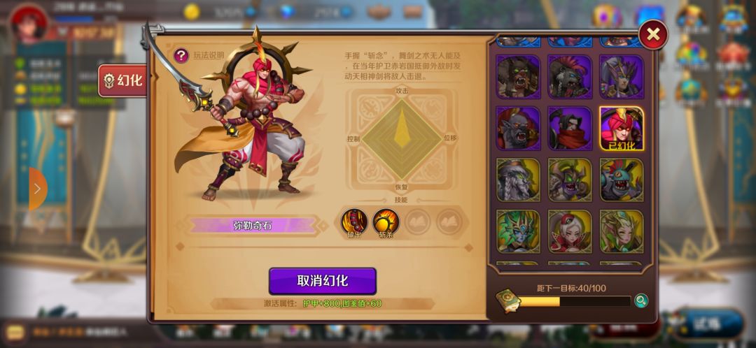 推图攒紫色幻化宝珠,等攒够了优先换弥勒奇石,技能很简单粗暴,压血线,斩杀。