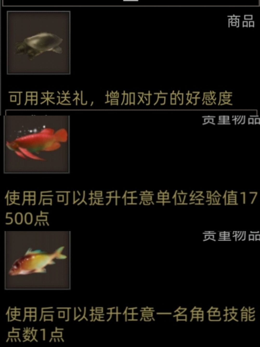 ★钓鱼点(红色小水塘):买鱼竿,可以钓经验鱼、技能鱼、礼物鳖,其他杂鱼都卖了;