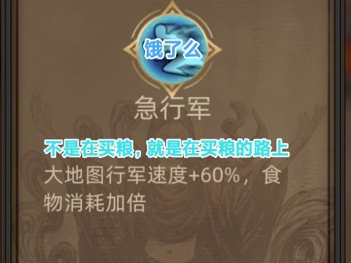 ★急行军:更新后为行军速度+100%,食物消耗+50%(mod更新后可以点)