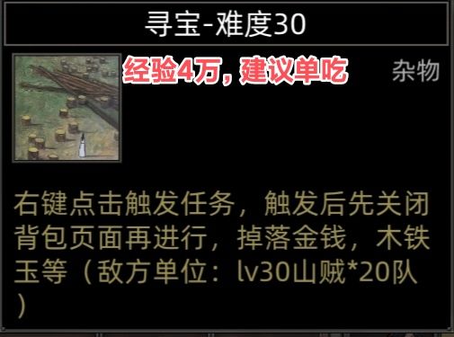 ★寻宝-难度30:看到必买,20个小杂兵给你4万经验,前期单吃,后期带妹。选三个满级大佬和一个萌妹,大佬不会吃经验,经验结算全给萌妹。前期练级主要道路,练满一个再拉一个,如此类推。