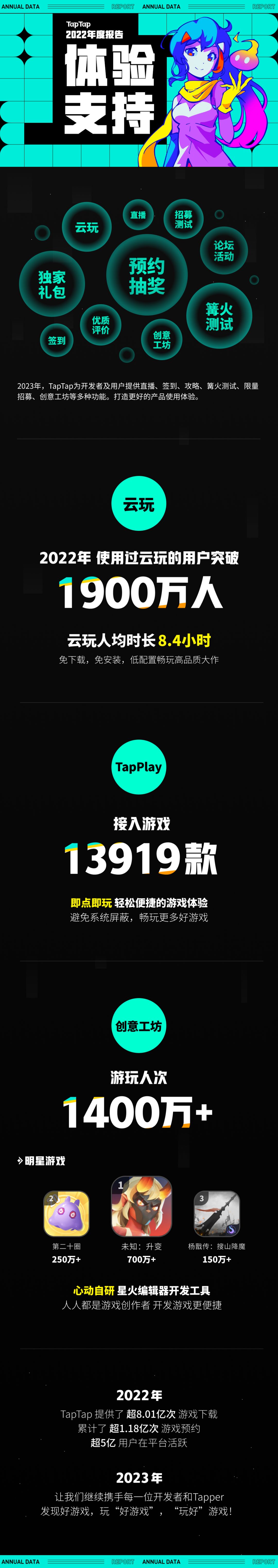 在充满挑战的2022年,一直以来努力帮助玩家们「发现好游戏」的TapTap,又发生了哪些变化,有哪些值得关注的数据,从这些数据中,能看到哪些行业的趋势呢?就让我们一起通过这份《2022 TapTap年度报告》,从TapTap的视角,观察过去一年中手机游戏行业中那些有趣的、特别的、可能被忽视的点点滴滴吧。