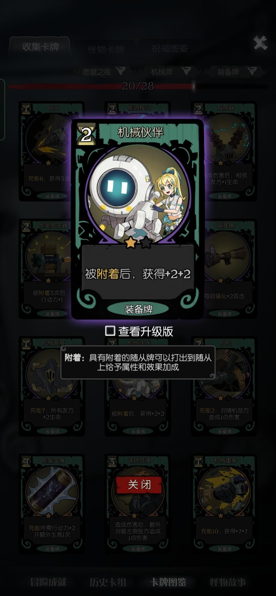 然后在装备的选择上,我们需要选择加属性的装备,如能量发生器跟机械伙伴这两张装备牌。
