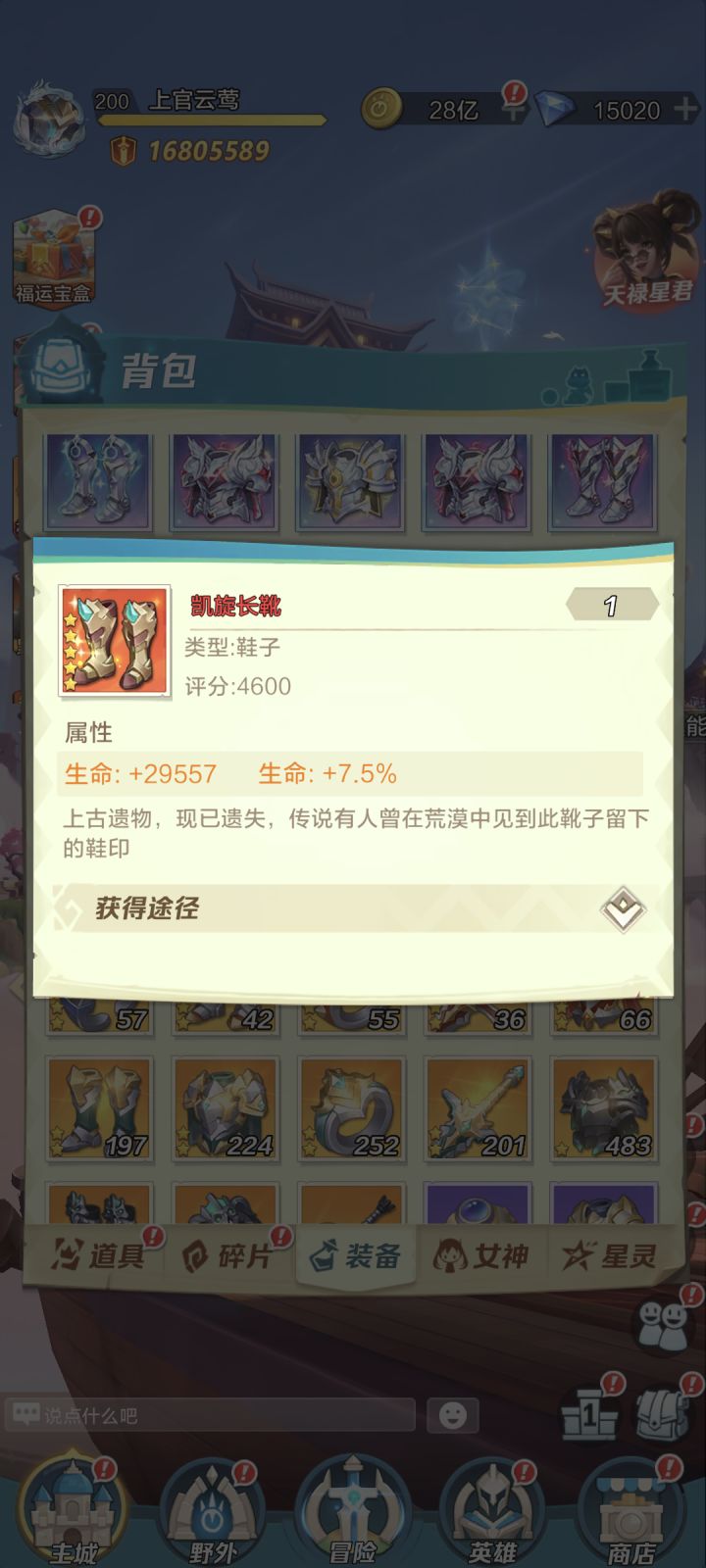 Pve或挂机奖励,稀有度极低(千万别花钻石买),前期过渡用,可以通过锻造升阶,有绿蓝紫橙红5中品质,仅基础属性无特殊技能。